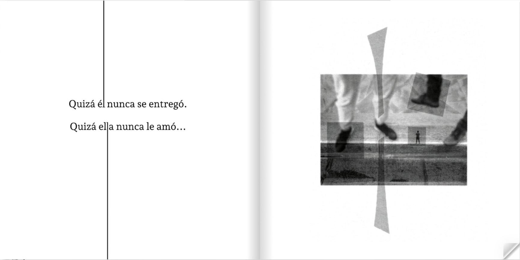 De esta manera, sus encuentros y desencuentros estarán llenos de literatura, de historias y poemas cuyas palabras irrumpirán en el libro ondulantes como el mar, solidas como una columna, dispersas por la sacudida del viento o, en definitiva, desplazadas de su posición lineal y consecutiva por el efecto de su propio significado, con el que juega la diseñadora del libro.